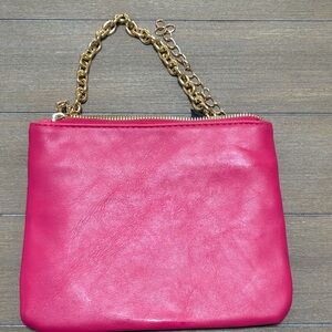 hot pink faux leather quilted crossbody bag magnetic closure gold-tone chain.