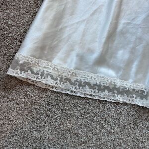 Stunning slip nightgown. Lace trim. Like new condition. Feels like silky/satin. It is 100% poly.