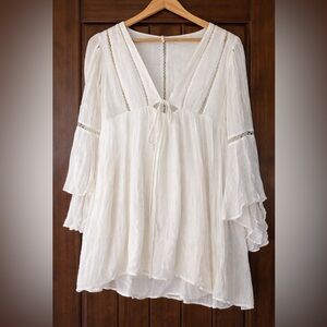 Free People Romeo Mini Dress White Boho Bell Sleeve V-Neck Lace Detail