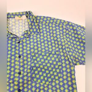 Vintage | Frankenstein brand | Men's Blue and Green funky Patterned Shirt
