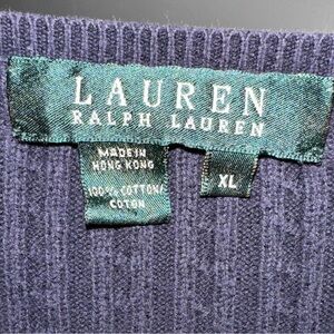 Elegant V-neck sweater with ribbed texture. Perfect for layering or wearing alone. Classic style by Ralph Lauren.