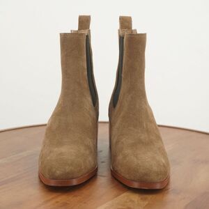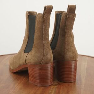 Stylish suede ankle boots. Chunky heel for comfort. Elastic side panels for easy wear.