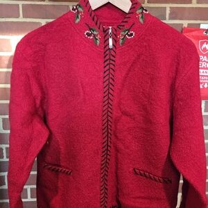 Norm Thompson Vintage Embroidered Wool Holiday Zip Sweater, Cardigan Jacket L