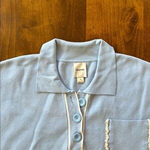 Maeve Anthropologie The Elliot Light Blue Pearl Embellished Knit Polo Top Size S