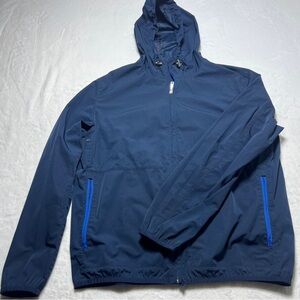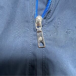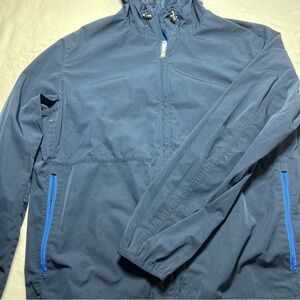 Experience the perfect blend of style and functionality with this Brooks Brothers blue windbreaker. Featuring a sporty design with a quarter-zip closure and royal blue accents, this jacket is ideal for casual outings. Its lightweight material ensures comfort and ease of movement.