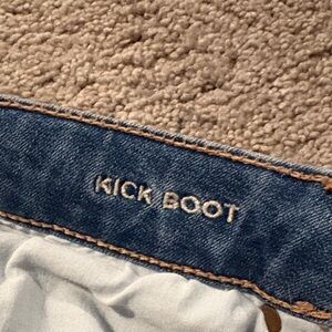 Classic denim jeans with a stylish back pocket design and front pockets. Comfortable fit for everyday wear. Size 4 Short. Inseam 29”, Kick Boot, Next Level Stretch