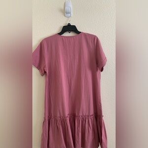 Chic and comfortable dusty pink mini dress with a button-down front. Perfect for casual outings. 100% cotton short sleeve no stretchy. Loose fit style. This dress is made of cotton so some wrinkles will be expected but can be ironed out.