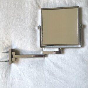 Square Wall Mounted Articulating Mirror, double sided in polished Chrome. Size is 8" x 8".