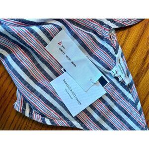 NEW WITH TAGS Beach Lunch Lounge Sleeveless Linen Blend Striped Jumpsuit gray, cream and red. Size Medium