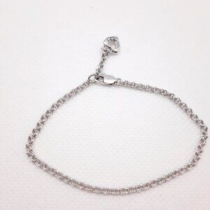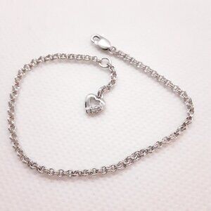 New sterling silver baby link bracelet with heart charm and 2 tiny diamonds, lobster claw clasp. Measures 2 inches and weighs 2.4 grams.