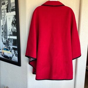 LODEN KING Thick Red Wool Cape with Black Trim from Germany. Vintage. M