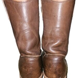 The boots are built with a rugged Goodyear leather welt construction for durability.