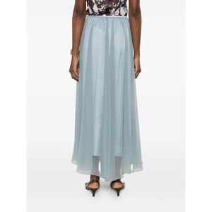 blue tiered design elasticated waistband semi-sheer finish Chiffon long skirt