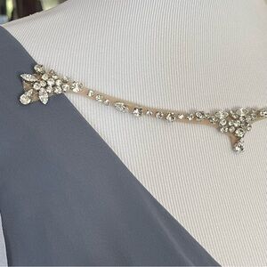 New with tags Jenny Packham steel blue chiffon empire waist sleeveless dress gown in size 6.