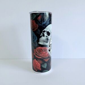 Stylish tumbler featuring skull and roses design. Perfect for daily use.