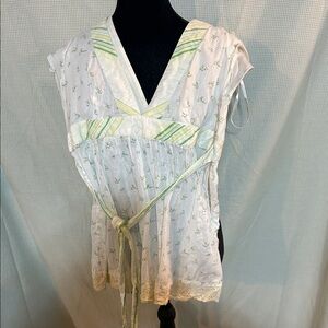 Vintage Free People White and Green Striped Blouse-size XS-S-Flaw