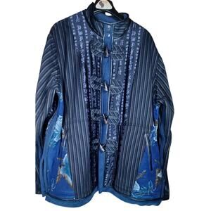 VTG Koos Of Course Women's 1X Chinese Script Reversible Coat, Silk Overlay Artsy, Plus Size, Toggle Buttons, Slits on the sides