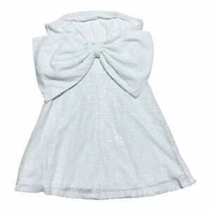 NWT, Size: M, Color: White, Allover Sequin Embellished, Strapless, Mini Silhouette, Lined, Giant Bow Detail At Back, 95% Polyester/5% Nylon, Lining: 100% Polyester