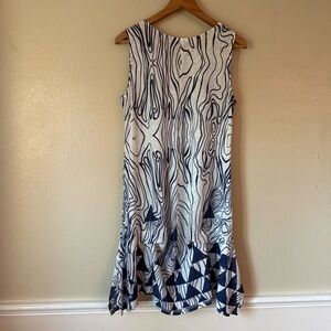 Stylish Shana sleeveless tunic dress with a blue and white pattern. Perfect for casual outings.