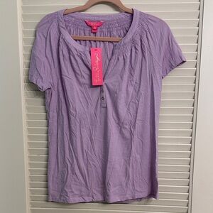 New with tags Lilly Pulitzer Essie short sleeve top in Purple Iris color, size medium. Kept in my pet free and smoke free home