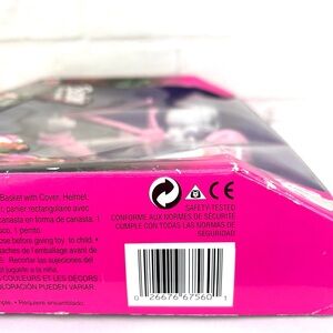 which includes a pink bicycle and accessories. Doll not included.
