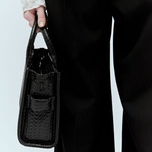 NWT {MARC JACOBS} BLACK The SMALL Tote Bag Croc Embossed Leather Tote -Crossbody