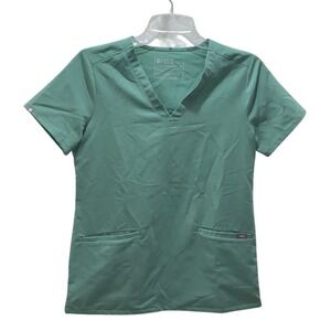 FIGS Technical Collection Women's Scrub Top Teal Green XS V Neck Short Sleeve