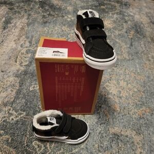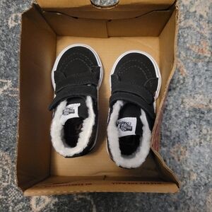 NEW Vans Kids Black High-Top Sneakers Size 5.5. Cozy black high-tops with soft lining. Easy to wear. Ideal for active kids.