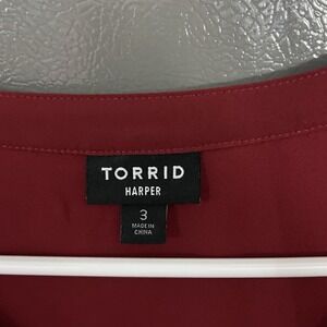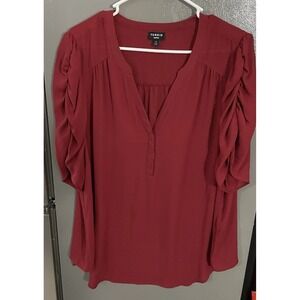 Torrid Women's Plus Size 2 2XL Maroon Harper Top Button Front Ruched Sleeves