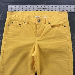 J.Crew City Fit corduroy pants in a vibrant yellow color. Made from a comfortable blend of 98% cotton and 2% spandex for a slight stretch and excellent fit. These pants feature a classic five-pocket design and a straight leg cut, perfect for casual or business casual wear. Size on tag is 28R, the sizing in the title is actual. Ideal for a tailored and flattering fit. A stylish addition to any wardrobe, combining comfort and timeless style.