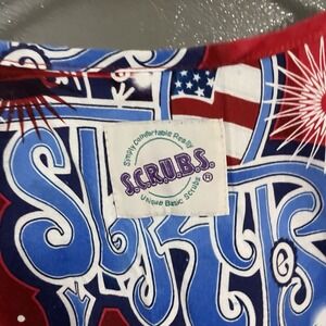 S.C.R.U.B.S. Women's Small Patriotic USA Red White Blue Scrub Top American