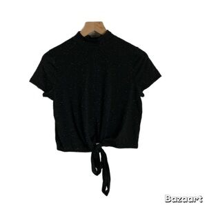 Sleek black crop top with a twist design. Ideal for casual wear. Comfortable and stylish.