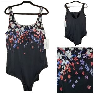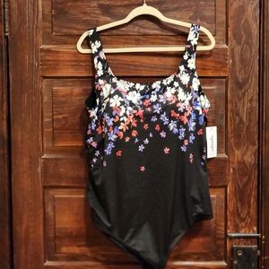 SWIMSUITS FOR ALL Floral Black One-Piece Tank Style Swimsuit - Plus Size 26 NWT