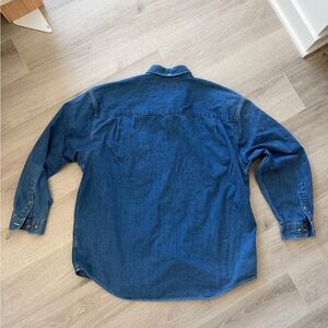 Stylish dark blue button-down. Perfect for everyday wear. Features a chest pocket and classic collar.