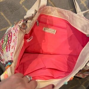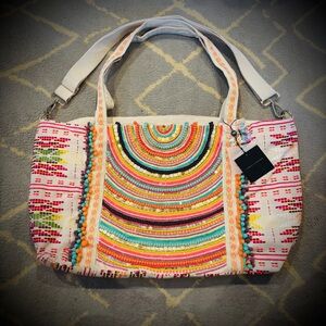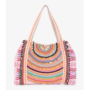 Vibrant and stylish, this embroidered women's bag is perfect for adding a pop of color to any outfit. Featuring a beautiful mix of pink, orange, and blue hues, it's a must-have accessory for fashion-forward individuals.