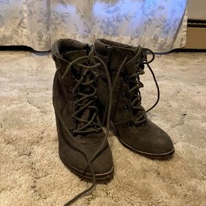 Sleek gray lace-up boots by Candie's. Perfect blend of style and comfort.