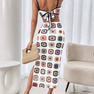 This vibrant skirt features a colorful pattern, perfect for adding a pop of color to your wardrobe. Ideal for casual outings or special occasions.