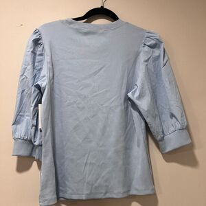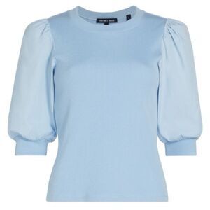 Veronica Beard Coralee Crewneck Top Cotton Rib Knit Puff Sleeve Lake Blue Large