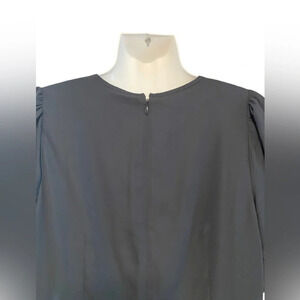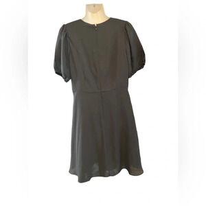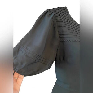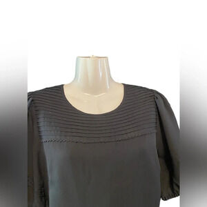 “With puffed sleeves, scalloped trim and a pretty pintucked yoke, this feminine mini dress is an LBD you can wear to the office and out after too.
