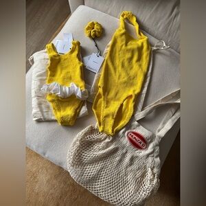 NWT - This will come with 6 total items 1 adult swimsuit and 1 kid swimsuit and happy to throw in the bags (1 for each suit), logo carrying bag, and scrunchie with purchase 🙂