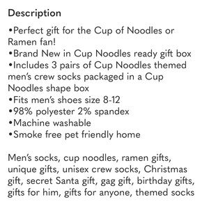 Cup Noodles Themed Men’s 3-Pair Crew Socks - Size 8-12