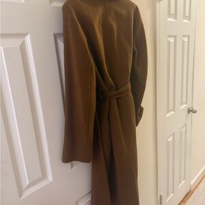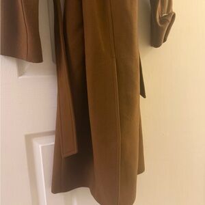 Chic Babaton Atelier trench “THE CONNOR” coat in a warm tan hue, size M. Made in Romania, slim fit, virgin italian wool & vegan chamois.