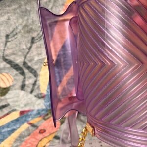 Elevate your style with this chic purple chevron crossbody bag. The elegant design and gold chain add a touch of luxury to any outfit.