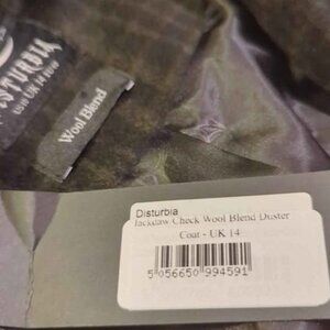 Disturbia jackdaw check wool blend duster coat size 10 new