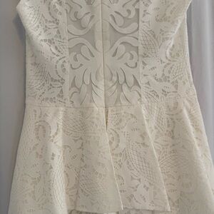 BCBG Max Azria Isabel White Lace Peplum Dress Women 4 Bridal Graduation Cocktail