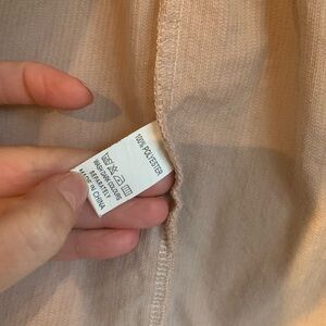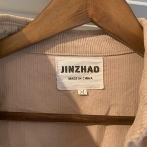 Stylish beige corduroy button-up shirt. Perfect for casual outings. Size medium, gently used condition. Peplum bottom detail. Cream/almost light pink color.