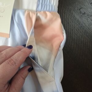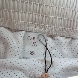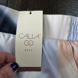 Elevate your game with this brand new with tags (NWT) CALIA by Carrie Underwood Golf Birdie Skort. This stylish and functional skort features a beautiful "Sediment Stripe Ardosia" print with shades of white, light blue, navy, and blush pink. Perfect for a day on the golf course, tennis court, or for any athletic activity.
