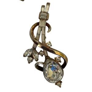This beautiful vintage jewelry set from Trifari, designed by Alfred Philippe, features stunning jewels inspired by the rich culture of India. The set includes a gorgeous brooch that will add a touch of elegance to any outfit. The cut grade of the gems is excellent, and the craftsmanship is superb.