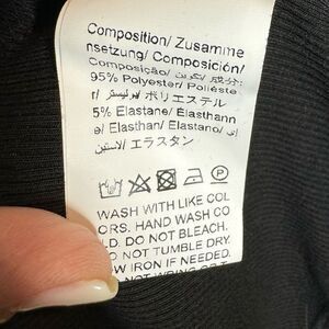 NWOT! Never worn. Size petite large. Color black. Medium stretch. 95% polyester 5% elastane. Measurements: 17.25” pit to pit; length from top to bottom hem 15.5”