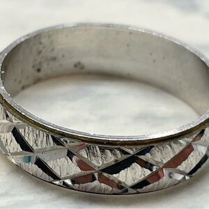 silver band ring, diamond cut ring, etched ring, geometric ring, unisex ring, men’s ring, women’s ring, vintage style ring, statement band, sample ring, wide band ring, comfort fit ring, shiny silver ring, fashion jewelry